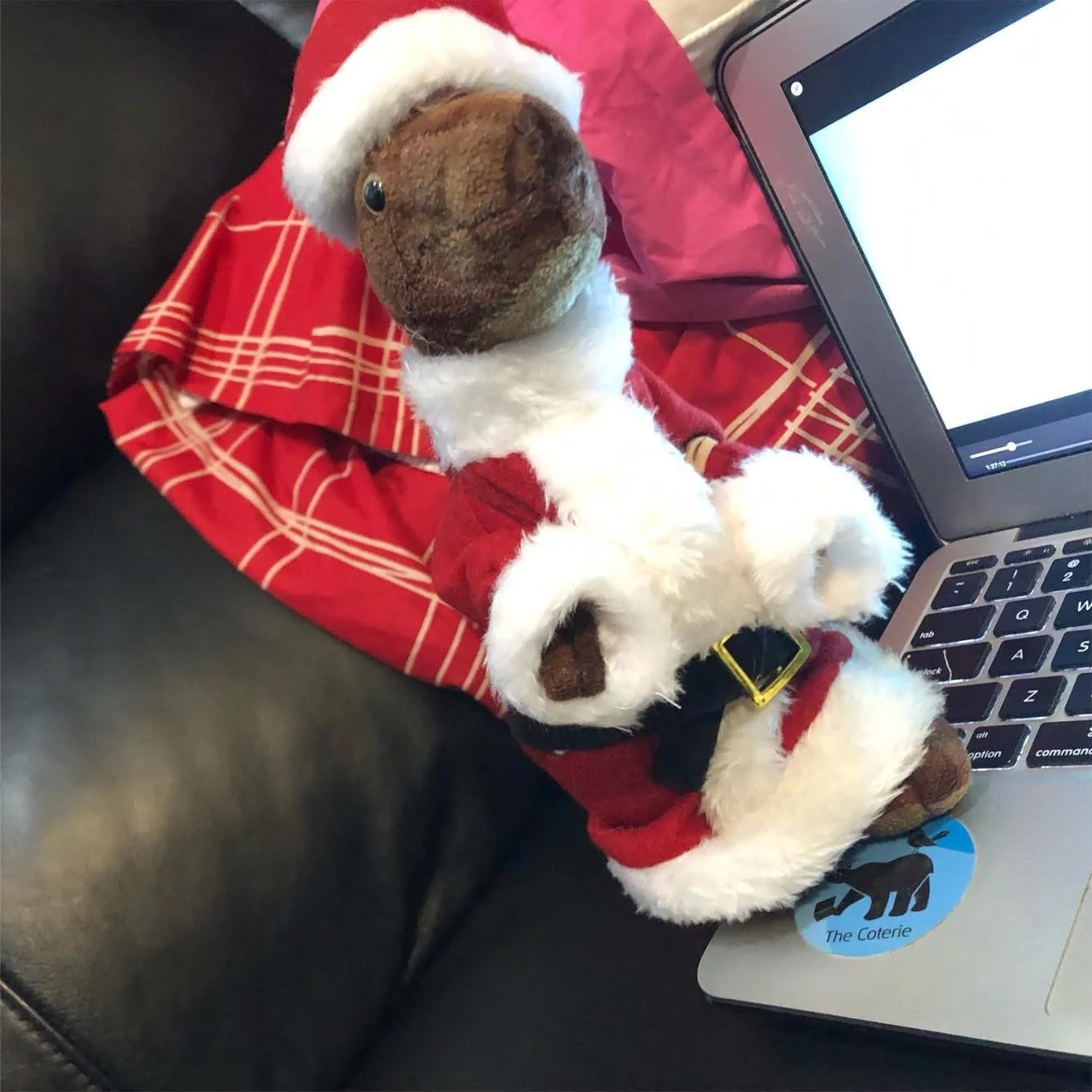 The object appeared to be a cheap imitation of a Jurassic Park Velociraptor toy, donning a peculiar ensemble of a sweater and what resembled a lab coat. Strapped to its back was a rucksack.
